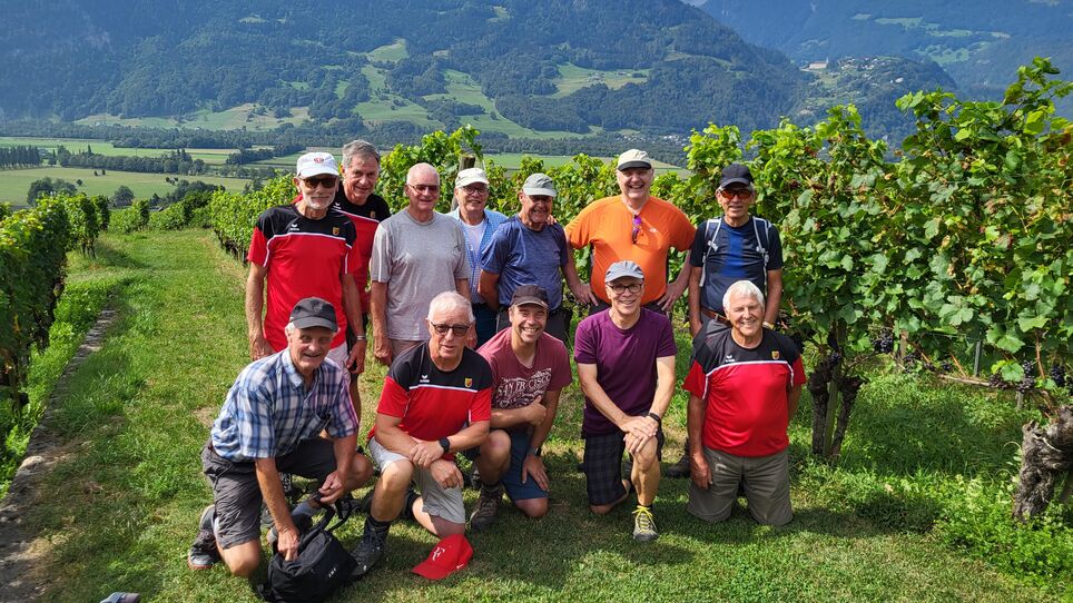 Bei bestem Wetter mit strahlendem Sonnenschein startete die Reise am Bahnhof Schwerzenbach und weiter über Zürich in Richtung Malans GR. Nach einer turbulenten Bahnfahrt im voll besetzten Zug wurde im "Cafe Sternen" in Malans der Startkaffe genossen. Anschliessend wanderte die Gruppe durch die malerischen Rebberge der Bündner Herrschaft, vorbei an überreifen Traubenstöcken und immer mit Blick auf die umliegende Bergwelt. Kurz vor Jenins wurde im Restaurant "Alter Torkel", mitten in den Rebbergen, der Apéro eingenommen. Hier wurden exquisite, weisse und rote Weine serviert, begleitet von köstlichen Rinderwürsten und schmackhaften Alpkäse – eine wahrhaft edle und besondere Erfahrung.