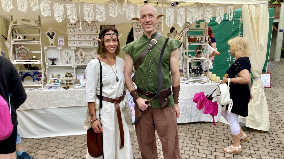Das Thema des Festivals war eine Zeitreise durch die letzten 200 Jahre. Daran orientierten sich auch die Stände. So zeigte etwa «Pascals Nadelbinderei», wie die Menschen Mützen und Halstücher herstellten, bevor sich das Stricken verbreitete: Beim Nadelbinden entstehen die Schlingen mit einer dicken Nähnadel statt mit Strick- oder Häkelnadeln. An anderen Ständen gab es etwa handgemachte Kosmetikprodukte oder Edelsteine zu kaufen. Das kulinarische Angebot am Markt reichte von Cornish Pasties über Käse und Nougat bis zu Beerenwein. «Der Markt hat eine gute Grösse, um sich auch mit den Leuten unterhalten zu können», sagte Natascha Ratzlaff, die selbstgemachten Schmuck verkaufte. Dazu trug wohl auch bei, dass die Veranstaltung wegen des wechselhaften Wetters nicht überlaufen war. Der Stimmung tat dies jedoch keinen Abbruch.