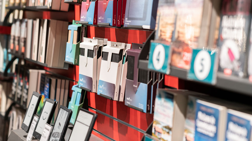 Alle, die gerne viel lesen, aber nicht viel schleppen möchten, sollten sich die praktischen eReader zeigen lassen. "Gerade ist ein ganz neuer tolino herausgekommen", erklärt das Weltbild-Team. Der shine 4 ist ausgestattet mit augenfreundlicher smartLight-Beleuchtung und bietet Platz für 12 000 Bücher.