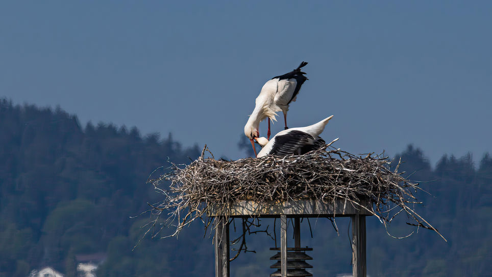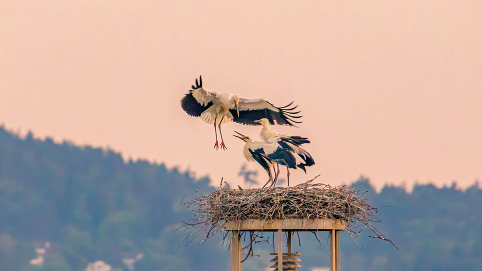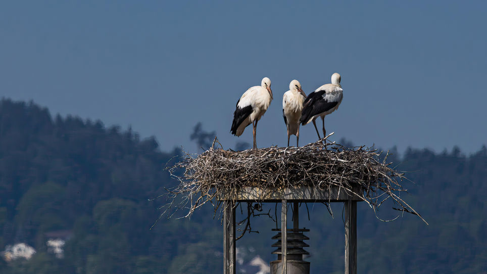 Die drei Volketswiler «Forsanose- Jungstörche» haben ihren Erstflug am 28. und 29. Juni absolviert. Wie in den Vorjahren trainierten die Jungstörche ihre Flügel jeweils zwei Wochen vor dem Erstflug, indem sie im Nest kräftig hüpften und dabei mit ihren Flügeln schlugen. Sprünge bis zwei Meter waren dabei keine Seltenheit. Ende Juni war es dann so weit. Einer dieser Sprünge führte zum Erstflug. Nicht weit, nur ein-, zweimal um den Kamin herum. Eine echte Herausforderung war die erste Landung. Auch Störche müssen lernen, ihre Geschwindigkeit und ihre Höhe richtig einzuschätzen. Nicht selten verfehlten sie den ersten Anflug. Meistens klappte es dann aber beim zweiten Landeversuch.