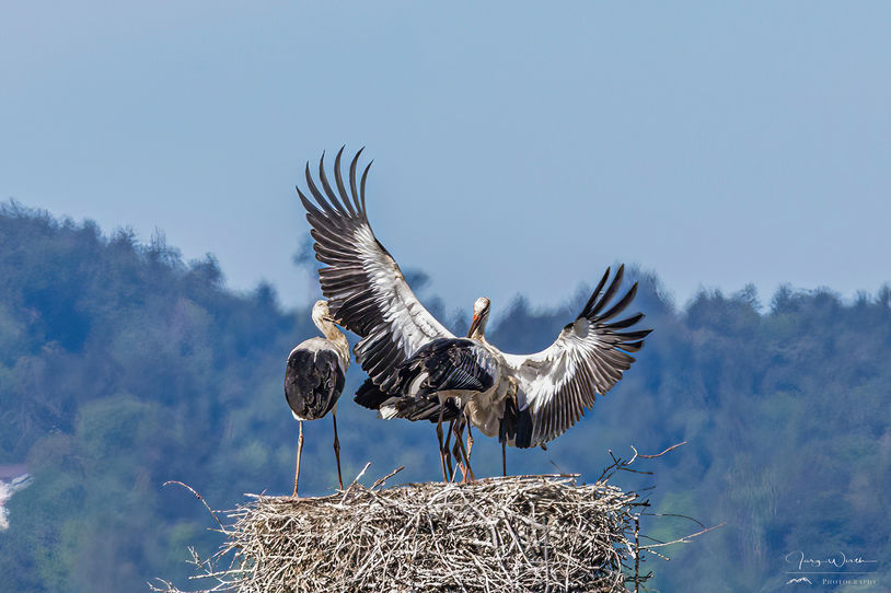 "Dieses Jahr hat das Storchenpaar auf dem Kamin der ehemaligen Forsanose-Fabrik vier Jungstörche erfolgreich aufgezogen. Was für eine Leistung!", schreibt der Volketswiler Fotograf Jürg Wirth. Und hält fest: Alle vier seien wohl auf und unternähmen die ersten Flüge. Dies allerdings zirka zehn Tage später als in den Vorjahren. Dies sei vermutlich dem grösseren Gelege geschuldet. Die Entwicklung der Jungstörche sei somit wohl etwas langsamer vorangegangen. Mit Freude beobachtete der Fotograf die Jungvögel bei ihren Erstflügen wieder mit der Kamera. "Irgendwie schaffen es die Jungstörche relativ präzise zum Nest zurückzufliegen. Die Landung selbst ist dann jeweils von heftigen Flügelschlägen und Korrekturen begleitet. Alles immer unter genauen Beobachtung der Geschwister und begleitet von lautem Geklapper", schreibt er dazu. Seine atemberaubenden Aufnahmen hat Wirth den "Volketswiler Nachrichten" zur Verfügung gestellt.