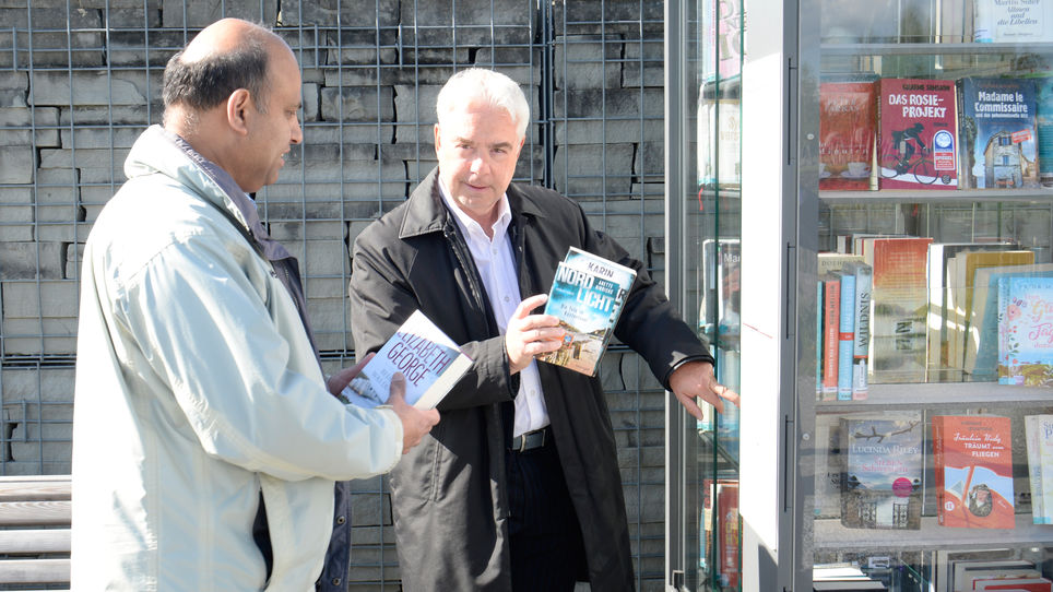 So sehr ich die hervorragenden Dienste der Bibliothek in Volketswil schätze und gerne und fleissig in Anspruch nehme, so kommt man doch immer wieder in die Lage – besonders eine Vielleserin wie ich – dass selbstgekaufte oder geschenkte Bücher das Regal zuhause zum Überquellen bringen. Bis jetzt bin ich jeweils in andere Gemeinden, die über einen Büchertausch verfügen, ausgewichen. Dass ich nun einfach in den Park spazieren, meine ausgelesenen Bücher deponieren und gemütlich auf dem Bänkli sitzend im Angebot des Bücherschranks schmökern kann, erfüllt mich mit grosser Freude. Danke an die Gemeinde und das Sponsorenpaar!