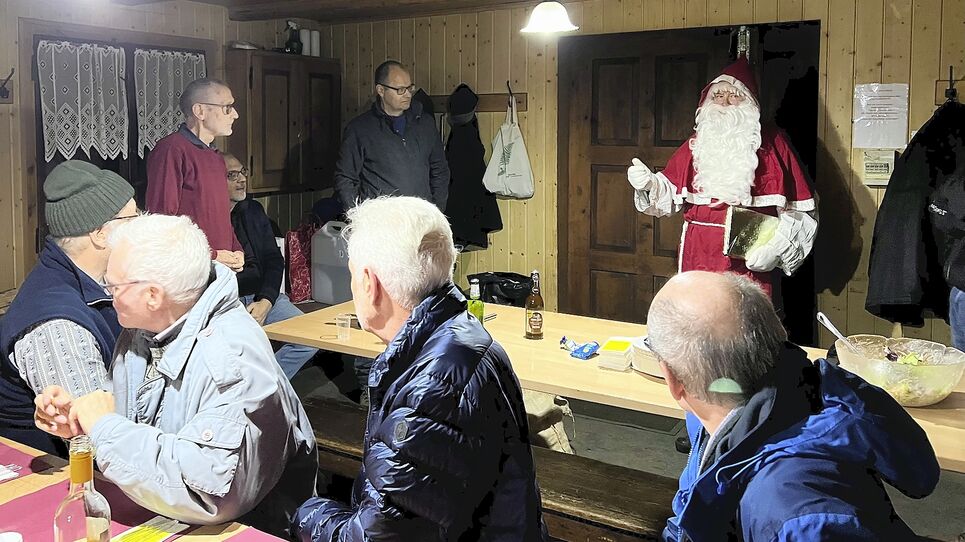 Zum Schluss hat der Samichlaus auch die gut besuchten Turnstunden sowie die regen genutzten, vielfältigen Aktivitäten der Männerriege gewürdigt. Wie zu erwarten war, hat der Samichlaus einen grossen Sack mit Nüssen, Mandarinen und Schöggeli ausgeschüttet. Dann ist er wieder im Wald verschwunden auf zum nächsten Einsatz.