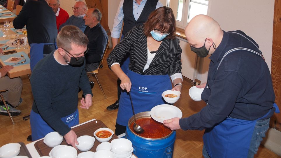 Am 8. Januar konnte Erwin Schön mit seinem Team die Besucher zum ersten Suppenzmittag im neuen Jahr begrüssen. Mitglieder der FDP Die Liberalen Volketswil bereiteten eine reichhaltige "Salvini-Minestrone" zu. Sowohl die Suppe als auch die zum Kaffee servierten selbst gebackenen Kuchen wurden gelobt und mit Genuss verspeist. Das Senig Suppenzmittag-Team hofft dass diese traditionellen Anlässe unter Einhaltung aller Vorschriften weiterhin durchgeführt werden können. Der nächste Suppenzmittag findet am Samstag, 12. Februar wiederum im Saal des Gemeinschaftszentrums In der Au statt.