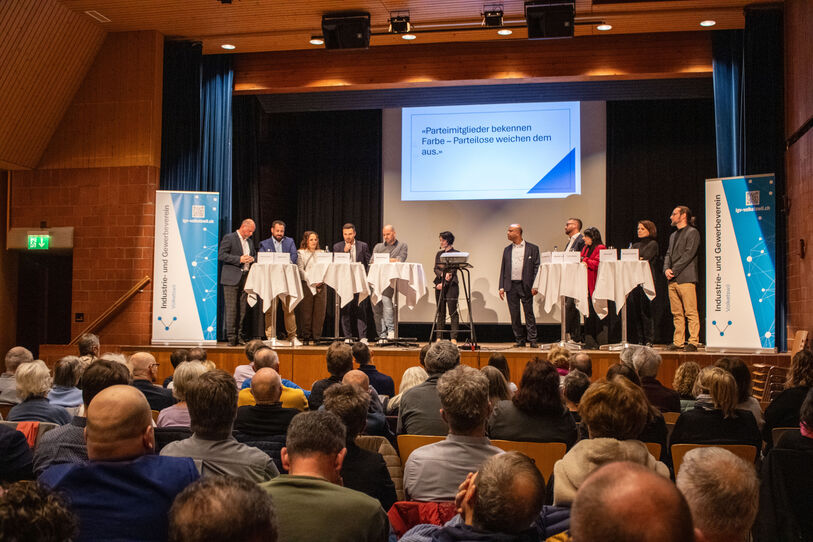 Danach übernimmt die Moderatorin Isabel Schorer das Wort. In der Mitte der Bühne stehend, flankiert von jeweils fünf Kandidierenden links und rechts, erklärt sie das Format des Abends. Entschuldigt abwesend ist Sarah Fischer (parteilos), die nicht teilnehmen kann. Schorer stellt Behauptungen in den Raum, die aus gesellschaftlichen Debatten, Leserbriefen und Gesprächen entstanden sind. «Es ist nicht meine Meinung», hält sie fest. Neben den Wortmeldungen auf dem Podium erhält auch das Publikum Gelegenheit, den Kandidierenden direkt Fragen zu stellen.