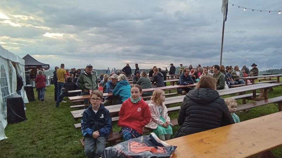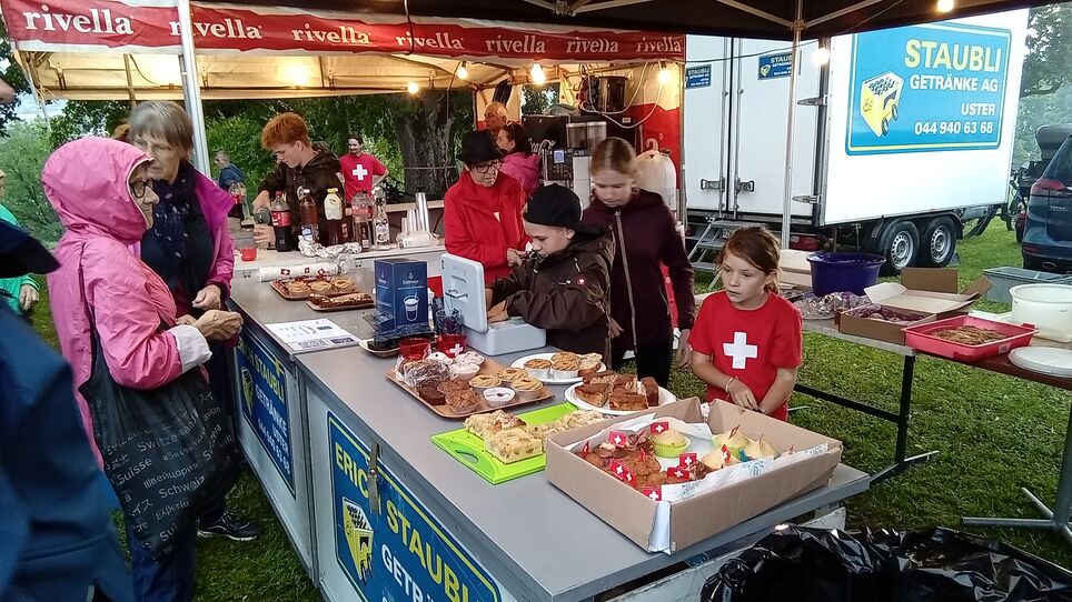 Schon zu Beginn drängten sich die Besucherinnen und Besucher unter die schützenden Zelte, die rasch randvoll waren. Über 30 freiwillige Helferinnen und Helfer sorgten trotz der nassen Umstände für einen reibungslosen Ablauf – und eine herzlich-freundliche Atmosphäre, die den ganzen Abend über anhielt.