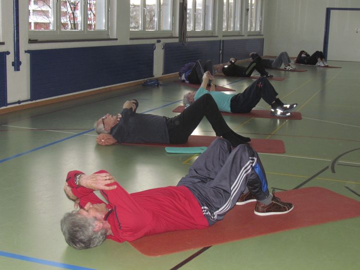 An diesem Mittwochnachmittag im Januar liegen 13 Herren älteren Semesters auf dem Boden der Zentral-Turnhalle verteilt und strecken, biegen oder dehnen auf Kommando ihre Arme und Beine in alle Himmelsrichtungen. Die Trainerin Marianne Schulz macht die Gymnastik-Übungen vor. Sie wirkt korrigierend ein, wenn das Gezeigte nicht ihren Vorstellungen entspricht. 1991 stiess die ehemalige Korbballspielerin zur damals von ein paar Volketswilern gegründeten Turngruppe für Herren im Pensionsalter. In den Anfangszeiten hätten sie noch Ballspiele gemacht, erinnert sich die rüstige Dübendorferin. Heute gestalte sie die Turnstunde etwas gemächlicher. Diese dauert von 15 bis 16 Uhr. Anschliessend pflegen die Senioren gemütliches Beisammensein bei einem erfrischenden Getränk am Stammtisch im "Wallberg".