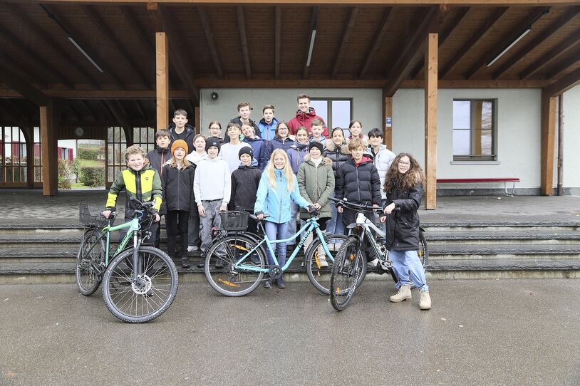 «Bike2school» will Kinder und Jugendliche im Alter von 10 bis 20 Jahre für das Velofahren auf dem Weg zur Schule motivieren. An der Aktion, die schweizweit durchgehführt wird, hat auch die Klasse 6b von Jeremy Fitzner und Sara Wyss teilgenommen. Während vier Wochen fuhren die Schülerinnen und Schüler sowie Lehrer Jeremy Fitzner vor den Herbstferien mit dem Velo zur Schule. Insgesamt legten die «Zänti-Riders» 1774 Kilometer zurück und sammelten 450 Punkte. Für jeden Tag, an dem ein Kind mit dem Velo fuhr, konnte es einen Punkt sammeln, ebenso die Lehrperson. Entsprechend ihrer längeren Schulwege legten die Schülerinnen und Schüler der Aussenwachten die meisten Kilometer zurück – Fabio, Giulia, Lena und Leonard aus Kindhausen sowie Lyne, Liara und Fabian aus Gutenswil.