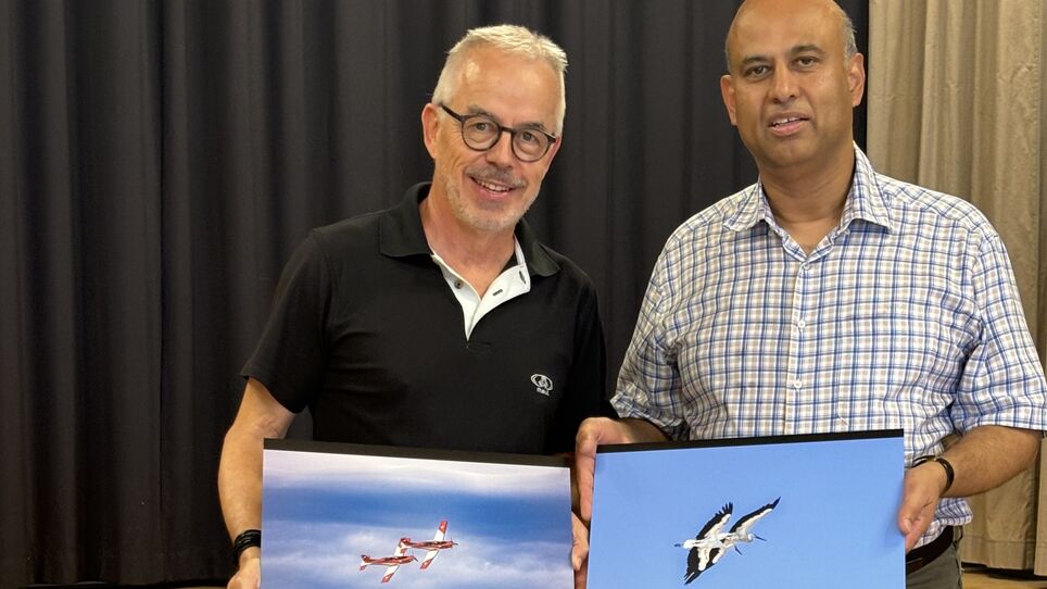 Das Wettbewerbsthema «Zwei Seiten – eine Gemeinde» bot viel Raum für Kreativität. Die Teilnehmenden setzten es auf ganz unterschiedliche Weise um – von Chaos und Ordnung über Tag und Nacht bis hin zu Sommer und Winter. Den ersten Platz belegte Jürg Wirth. Sein Bilderpaar stellt den Kontrast zwischen Natur und Technik dar: Auf dem einen Bild sind Störche zu sehen – ein einheimischer und ein Zugvogel im Streit –, auf dem anderen zwei Showflugzeuge am Himmel. Wirth erwähnte, dass er mit seinen Fotos immer versucht, eine Geschichte zu erzählen. Die eingereichten Aufnahmen stammen bereits aus dem vergangenen Jahr und entstanden von seiner Terrasse aus. Seit über 45 Jahren fotografiert er, davon 25 Jahre intensiv, und hat sich besonders auf Störche spezialisiert. «Ich liebe es, Störche zu fotografieren, sie faszinieren mich immer wieder aufs Neue», sagte er. Manche seiner Bilder bearbeitet er auch leicht digital, um die Wirkung zu verstärken. Der zweite Platz ging an ein Bilderpaar, das zwei verschiedene Einsätze von Rettungskräften gegenüberstellt: einmal mit dem Helikopter, einmal mit einem speziellen Kran und einer Krankentrage. Der Preisträger konnte bei der Verleihung nicht anwesend sein. Den dritten Platz belegte Simona Peak mit einem poetischen Bilderpaar aus einem Sonnenaufgang und einem Sonnenuntergang. Sie führte aus, dass die Aufnahmen ganz in der Nähe ihres Wohnorts entstanden sind.
