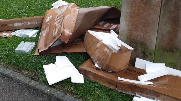 Volketswil, In der Höh – Containerplatz (bei Nr. 14), gesehen am Mittwochvormittag, 24. September. Wäre der Kartonabfall nicht mit Styropor vermischt,...