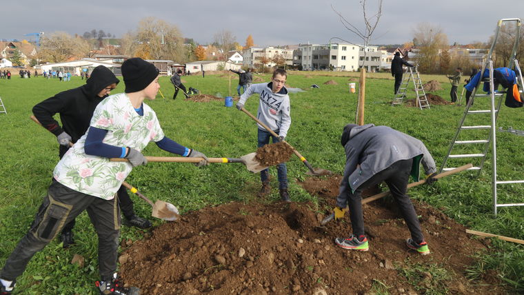 Die Sekundarstufe vom Hellwies setzte sich für die Natur ein – am Kirchweg pflanzten die Jugendlichen unter Anleitung 35 Hochstamm-Obstbäume an,...