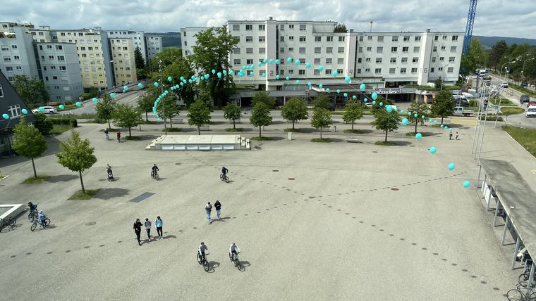 So hat man den Gemeindehausplatz noch selten gesehen: überspannt von türkisfarbenen Ballonketten. Die Kommunikation der Gemeindeverwaltung hat am...