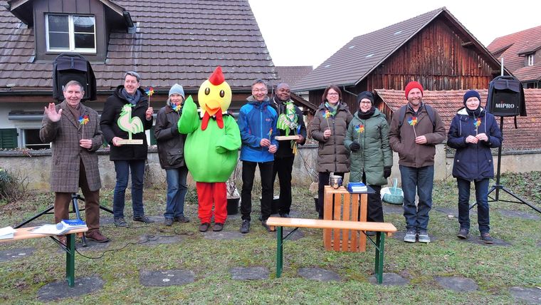 Vor der malerischen Kulisse des Greifenseer Schlosses krähte am Nachmittag des 22. Januar 2022 zum ersten Mal ein «Grüner Güggel». Er rief...