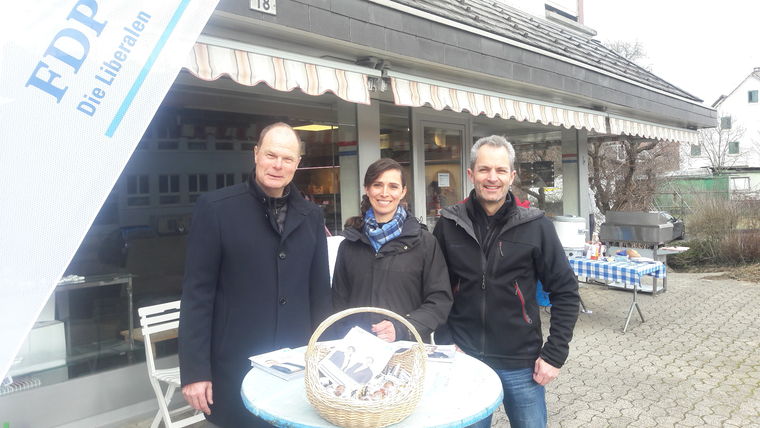 Die drei FDP-Kantonsratskandidaten Markus Blass (Volketswil), Raffaela Fehr (Volketswil) und Matthias Bickel (Uster) gastierten heute Samstag mit...